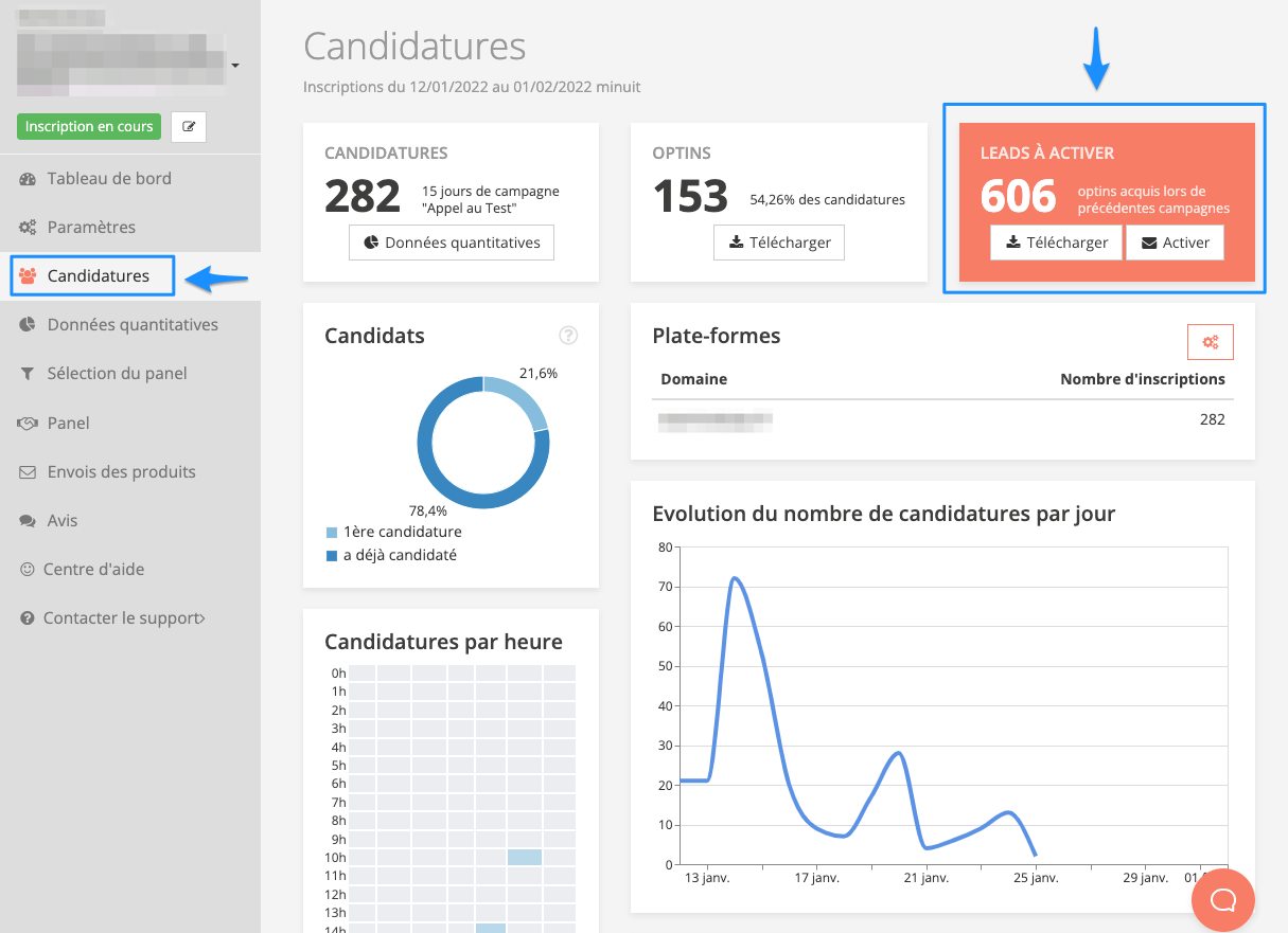 Pour cela cliquez sur la campagne concernée et cliquez sur l'entrée de menu Candidatures