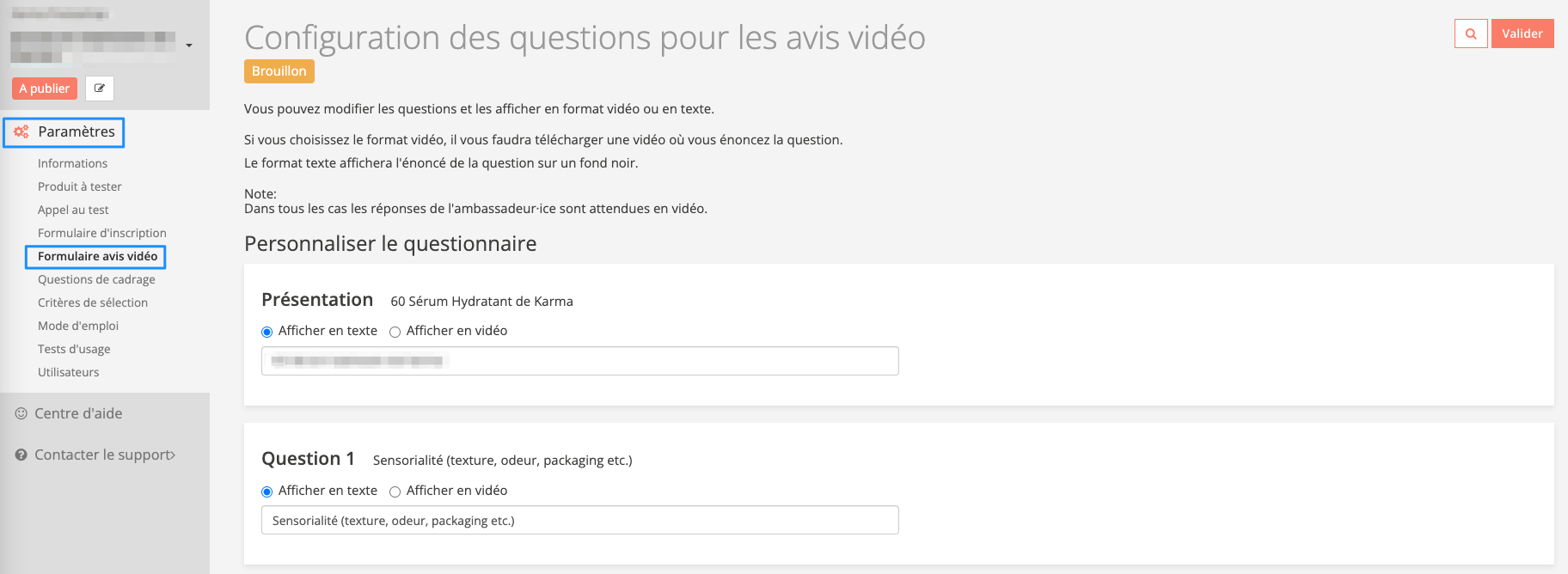 Comment paramètrer le questionnaire pour obtenir des avis vidéo ?