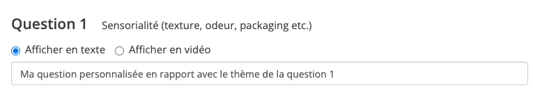 - En format texte : utilisez la question écrite par défaut ou remplacez par une de votre choix,