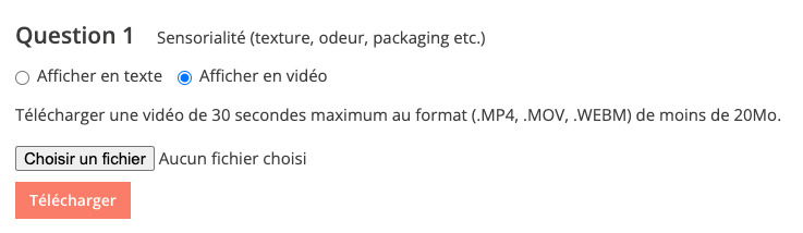 - En format vidéo : chargez une vidéo par question posée où vous énoncez la question.