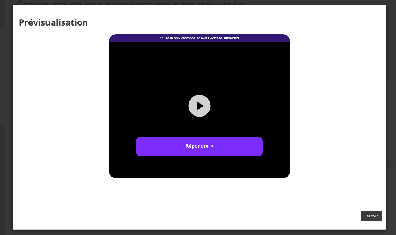 - Si vous optez pour des questions posées en vidéo, elles s’enchaineront automatiquement après chaque réponse enregistrée,