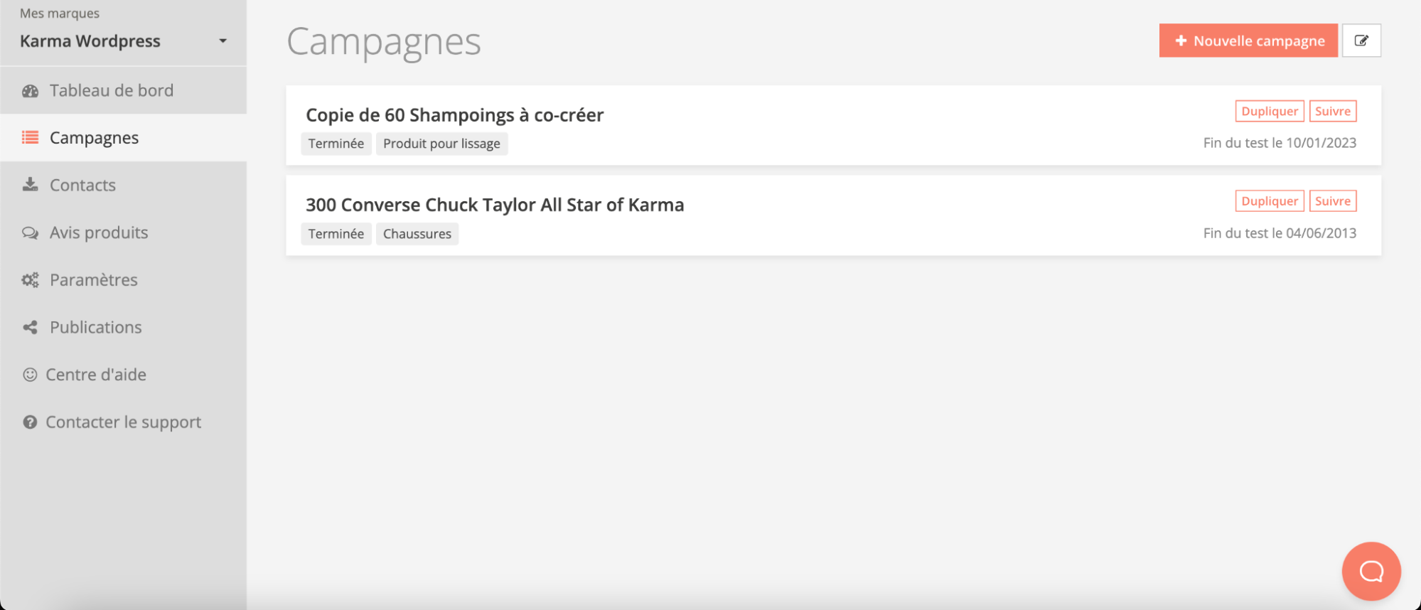 Sur le logiciel Trustt, rendez-vous dans vos “Campagnes”. Puis, cliquez sur le bouton “Dupliquer” à droite.