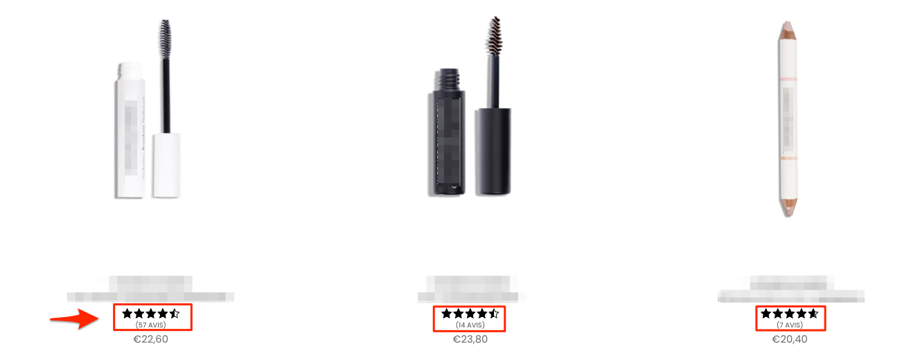Il s'agit ici de supprimer l'affichage des étoiles et du nombre d'avis qui s'affichent dans les miniatures des produits affichées dans les pages catégories, pages des résultats de recherche, produits mis en avant sur la homepage ou autres éléments de vos pages.