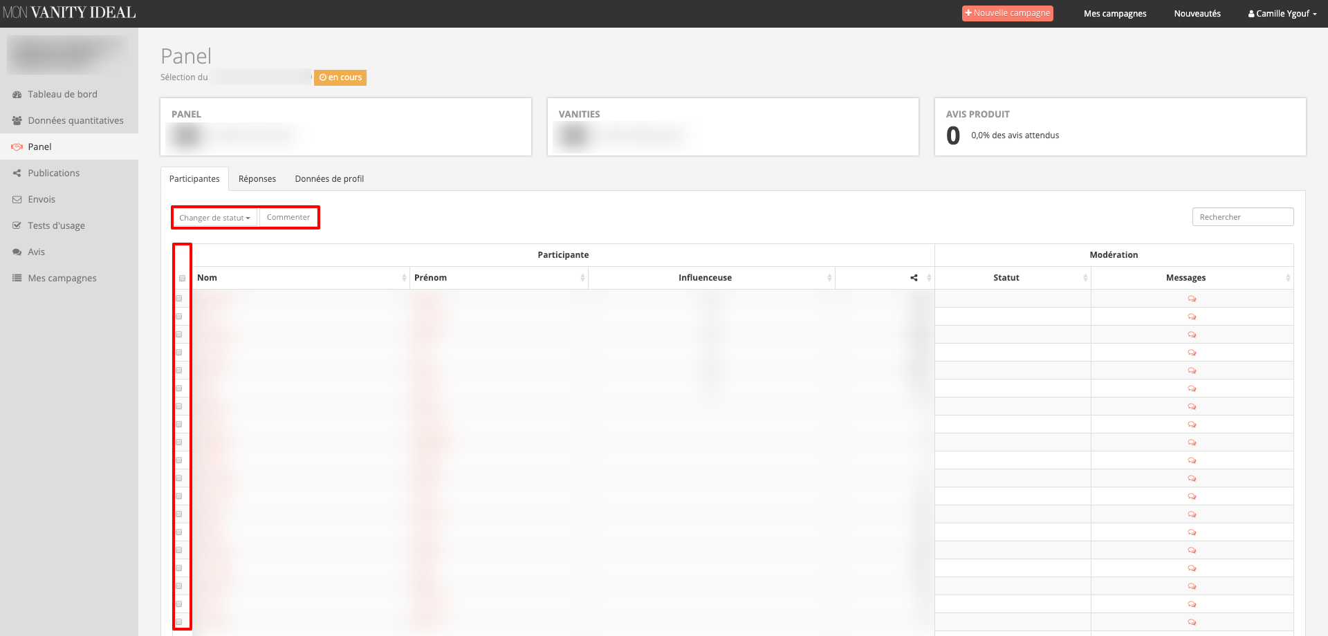 Pour faire le même commentaire sur plusieurs influenceurs, il suffit de cocher les dits influenceurs en question, et cliquer sur "commenter".