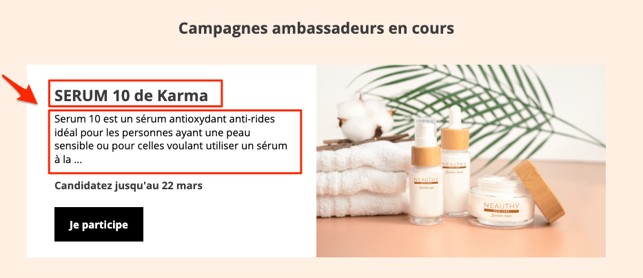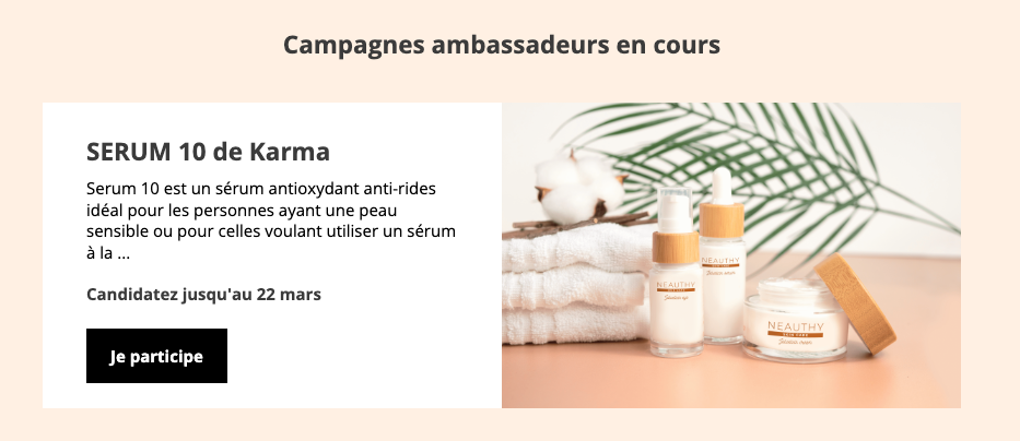 Cette photo apparait dans la liste des campagnes en cours sur votre page de programme ambassadeur.