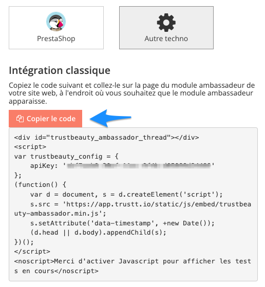Ce code contient l'API Key nécessaire à l'affichage de vos campagnes.