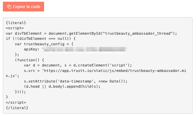 Vérifiez que vous avez copié l'intégralité du code dans la page du paramètre du module ambassadeur et que la clef API sur votre page ambassadeur est la même que le code présenté dans le module ambassadeur.